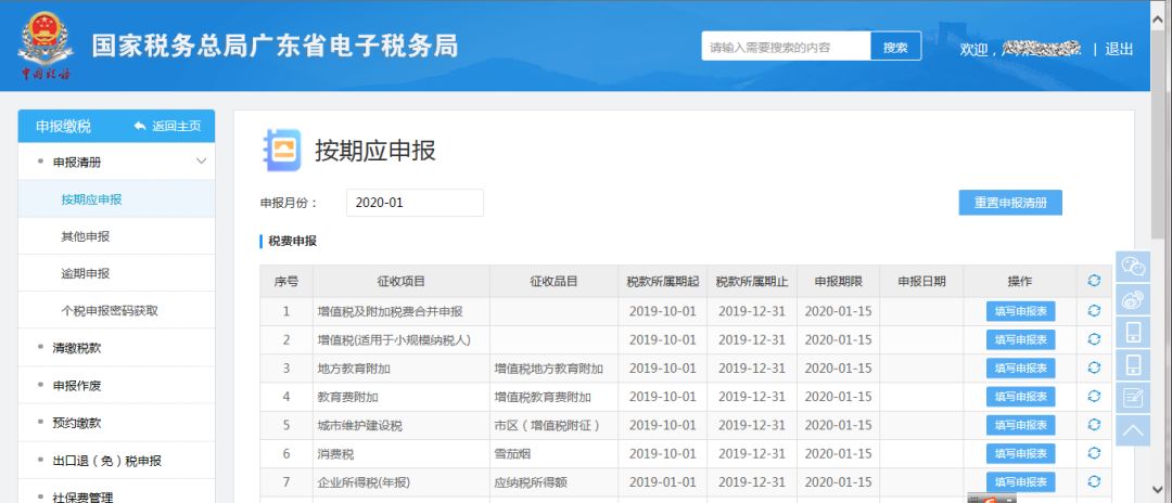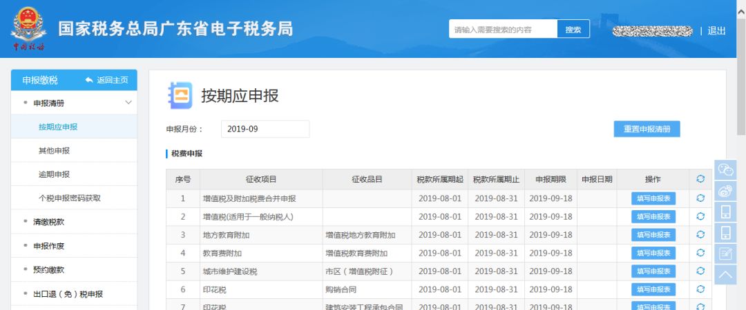 進(jìn)入申報(bào)清冊(cè),選擇“增值稅及附加稅費(fèi)合并申報(bào)”,點(diǎn)擊“填寫申報(bào)表”按鈕;