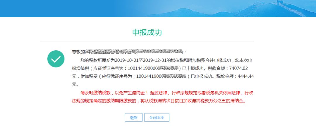 (6)系統(tǒng)返回申報(bào)成功回執(zhí)。