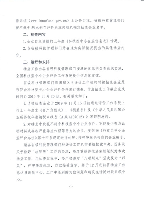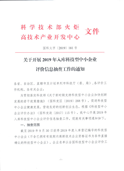 關(guān)于開展2019年入庫科技型中小企業(yè)評價(jià)信息抽查工作的通知