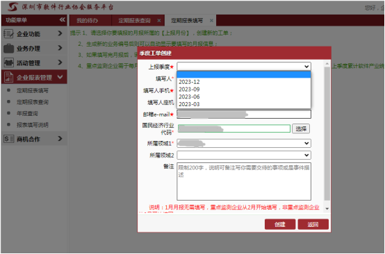 (選擇對應季度創建工單,填寫完整后提交,待工作人員審核)